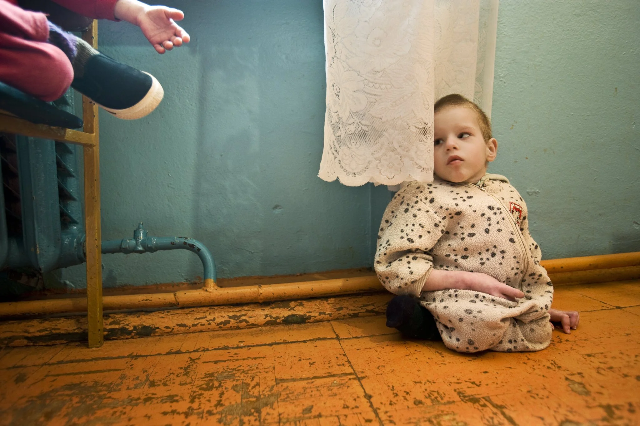 Severely physically and mentally handicapped, 5-year-old Igor was given up by his parents and now lives at a children’s mental asylum, which cares for abandoned and orphaned children with disabilities. It is one of several such facilities in rural southern Belarus receiving support from Chernobyl Children International, an aid organization established in 1991 in the aftermath of the world’s worst nuclear disaster.