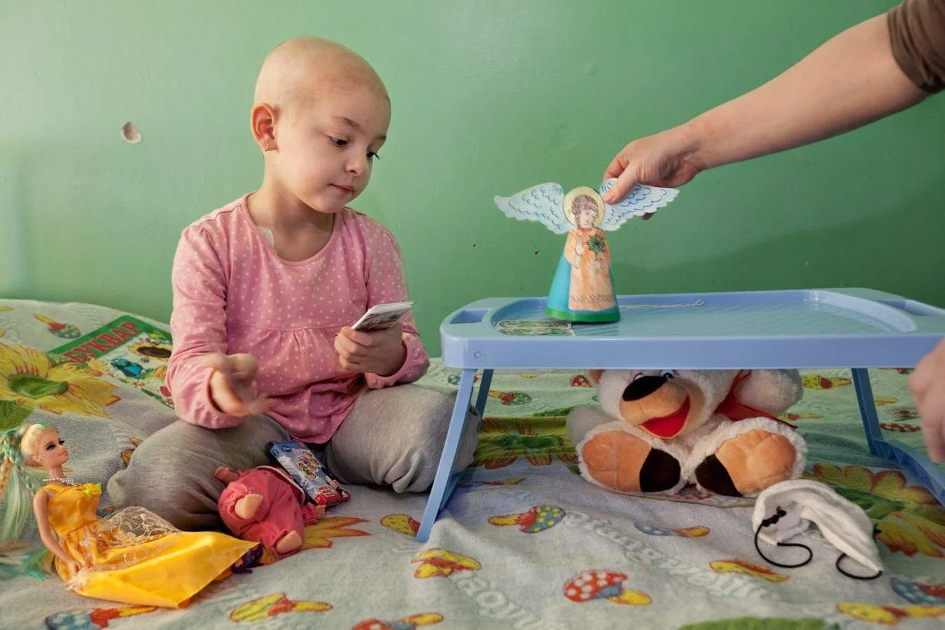 Only 5 years old and suffering from leukemia, Veronika is hospitalized at the Center for Radiation Medicine in Kiev. Her mother Yelena, 29, was born four years before the Chornobyl accident in nearby Chernigov, a city heavily affected by nuclear fall-out. According to doctors at the hospital, many patients’ conditions are a direct result of the radioactivity released after the accident.